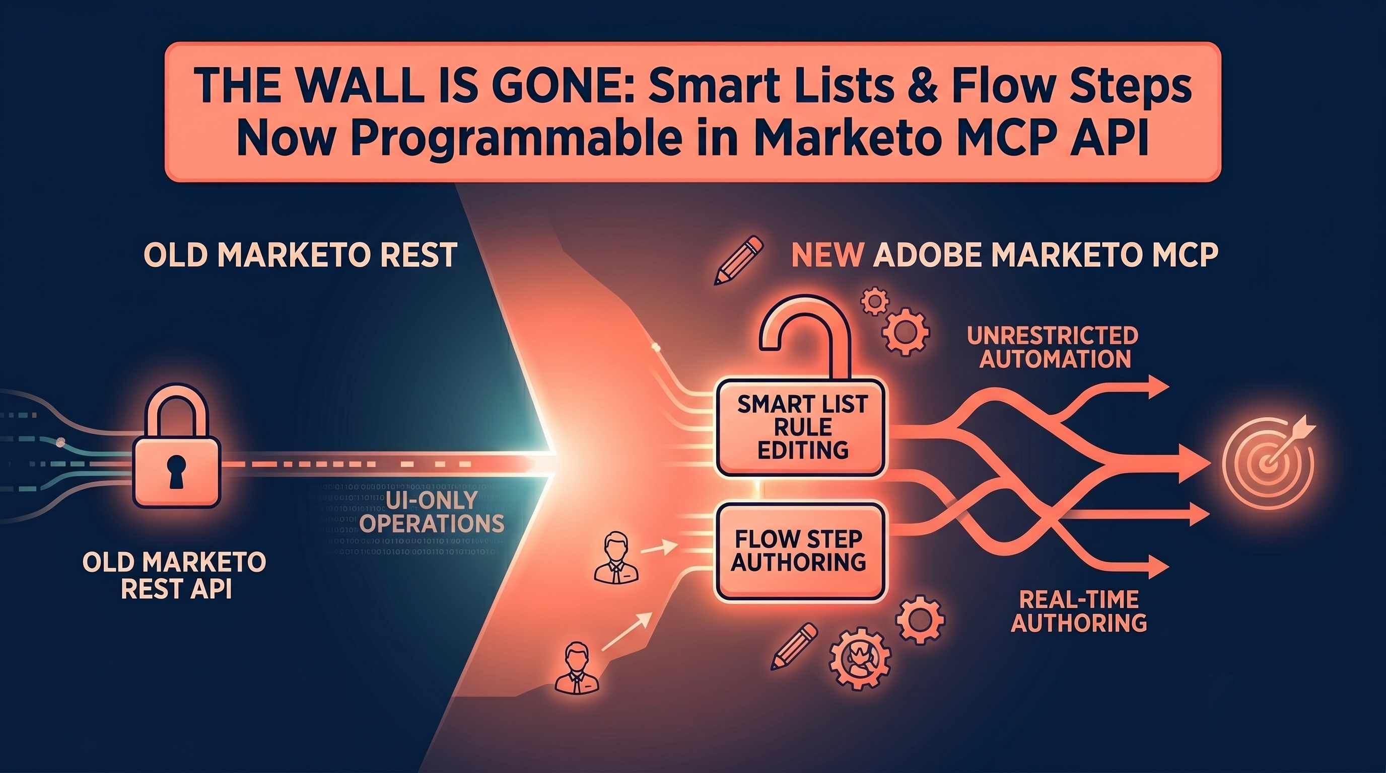 TL;DR: The new Adobe Marketo MCP exposes APIs the public REST endpoints never supported — specifically smart list rule authoring and smart campaign flow step authoring. This post breaks down what's newly possible, what it means for marketing operations, and where the abstraction work still needs to happen.